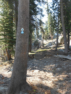Trail starts at a small pullout below the west side of Echo Summit. It crosses a creek on a dirt road and hiking trail goes off to the left (southeast) in some forest along the creek.The trail then junctions a hikable portion of the Pony Express Trail. Continuing on the TRT, the trail soon comes to the Adventure Mountain Ski Park where I turn around to take a picture of a mileage sign.